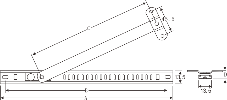符合中國QB/T3888《鋁合金窗不銹鋼滑撐》標(biāo)準(zhǔn)。