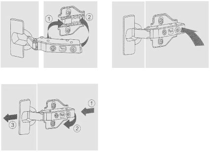 ※當(dāng)門上有多個(gè)鉸鏈時(shí),將所有鉸鏈按圖示方向卡入鉸鏈底座。