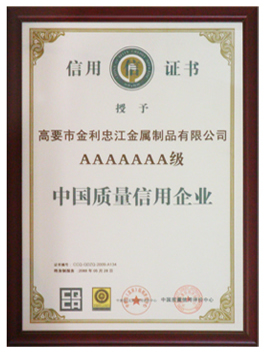 憑借科學精細的企業(yè)管理,穩(wěn)定過硬的產品質量,誠實守信的工作態(tài)度,忠江公司近年先后榮獲“重合同守信用企業(yè)”,“誠信單位”,“中國質量信用AAAAAAA級企業(yè)”等多項榮譽。各種產品暢銷全國,出口亞州、美洲、歐洲等多個國家和地區(qū),具有良好的市場聲譽。